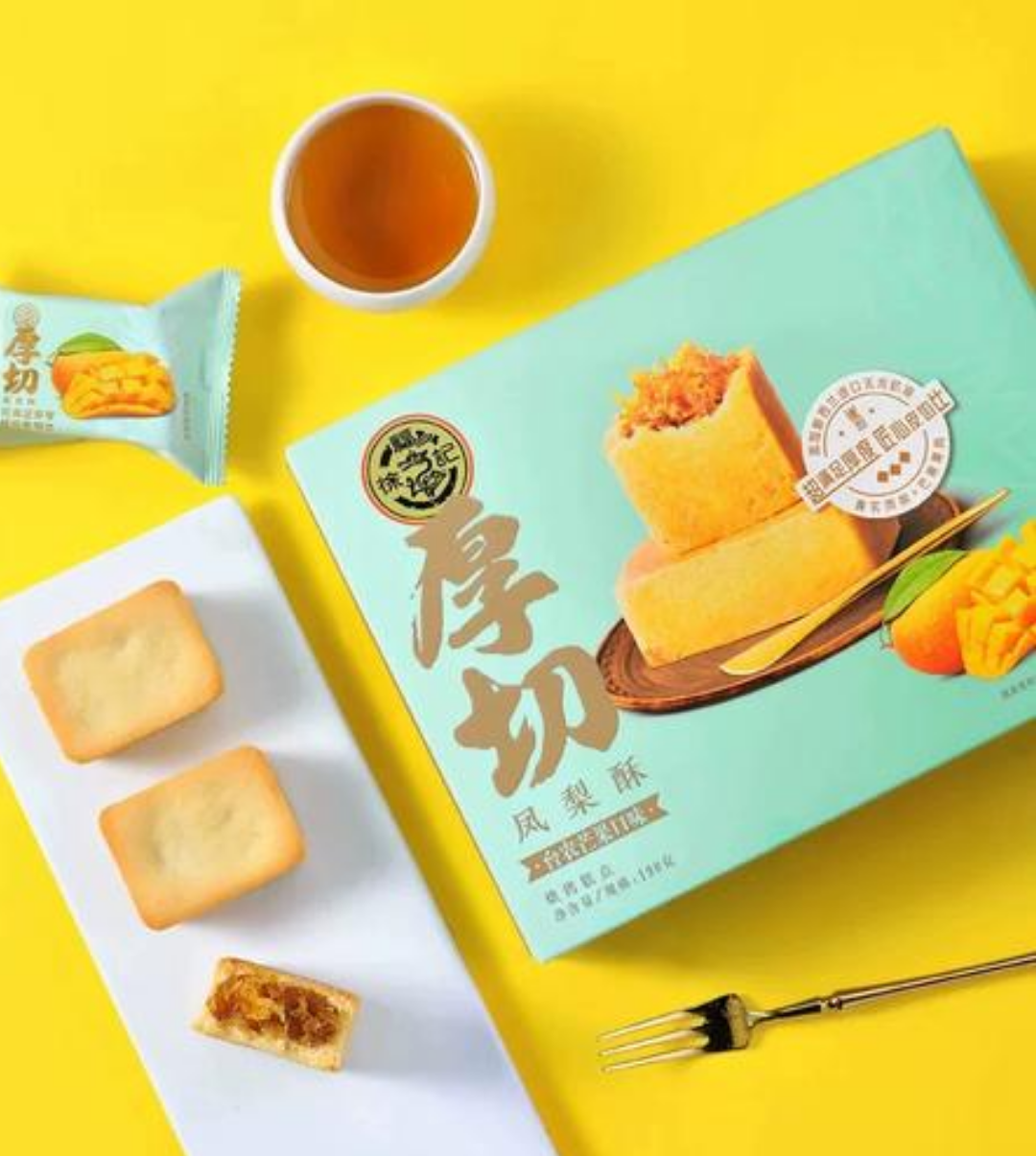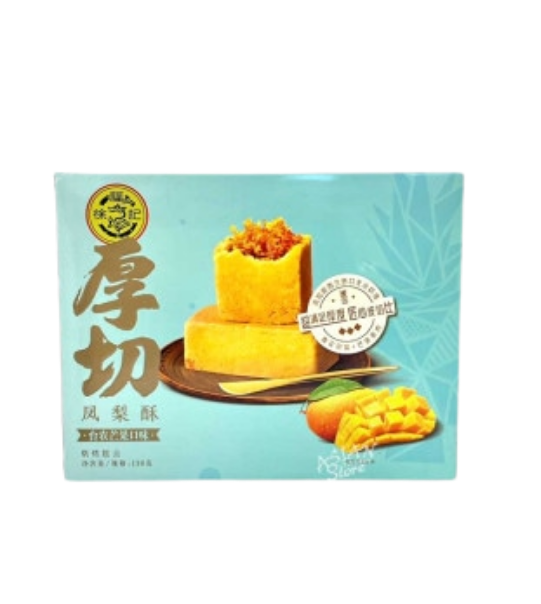 マンゴーの香りと酸味を加えたフルーティーな餡を、厚みのある生地で包んだパイナップルケーキです。
